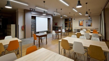 Naše největší konferenční místnost je vhodná pro pořádání velkých konferencí, školení a seminářů. Nabízí kapacitu až 100 osob a je vybavena moderní audiovizuální technikou včetně projektoru, ozvučení, mikrofonů a dalšího příslušenství. Prostor je světlý, vzdušný a plně klimatizovaný, což zajišťuje maximální komfort během celého dne. Díky variabilnímu uspořádání stolů si můžete prostor upravit podle potřeb své akce.