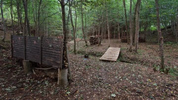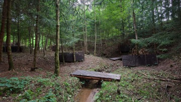 Naše lesní outdoorové paintballové hřiště má rozlohu 4 000 metrů čtverečních a v roce 2022 jsme ho zásadně vylepšili. Nachází se přímo v našem areálu, v lesním porostu a využívá přirozené vegetace, čímž získáte pocit skutečného střetnutí v otevřené krajině. Najdete tu jak umělé, tak přírodní překážky včetně protékajícího potoka, lávek, dvou základen, věže, zákopů a střílen.