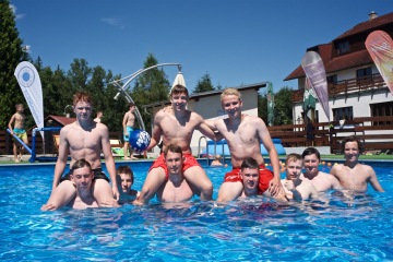 Při focení vodního póla nám přálo nejen počasí, ale pomohla nám i přítomnost kluků z Judo academy, kteří u nás jsou na letním soustředění. Tihle skvělí sportovci otestovali naše nové branky a se svojí výbornou kondicí nám všem ukázali, jak se to hraje se 100% nasazením. Předvedli smysl pro taktiku, kterou jim vštěpují trenéři a jejich hra byla kreativní, plná rychlých nahrávek, sólových úniků a osobních soubojů. Pokud Vás láká zkusit si vodní pólo, u nás Vás čeká bazén a vše potřebné. Klukům děkujeme za pomoc při focení.