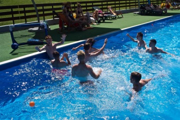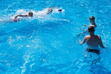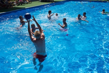 Skvělá hra do parného léta. Vodní pólo Vás bude nejen bavit , ale též dokonale prověří vaší kondici. A je jedno, zda budete jen plavat nebo si dohodnete možnost postavit se na dno. Utvořte dva týmy, my Vám půjčíme branky a míč. Doporučujeme hrát jen na šířku bazénu. Hra bude rychlejší, a to družstvo, které využije rychlé nahrávky, půjde do vedení.